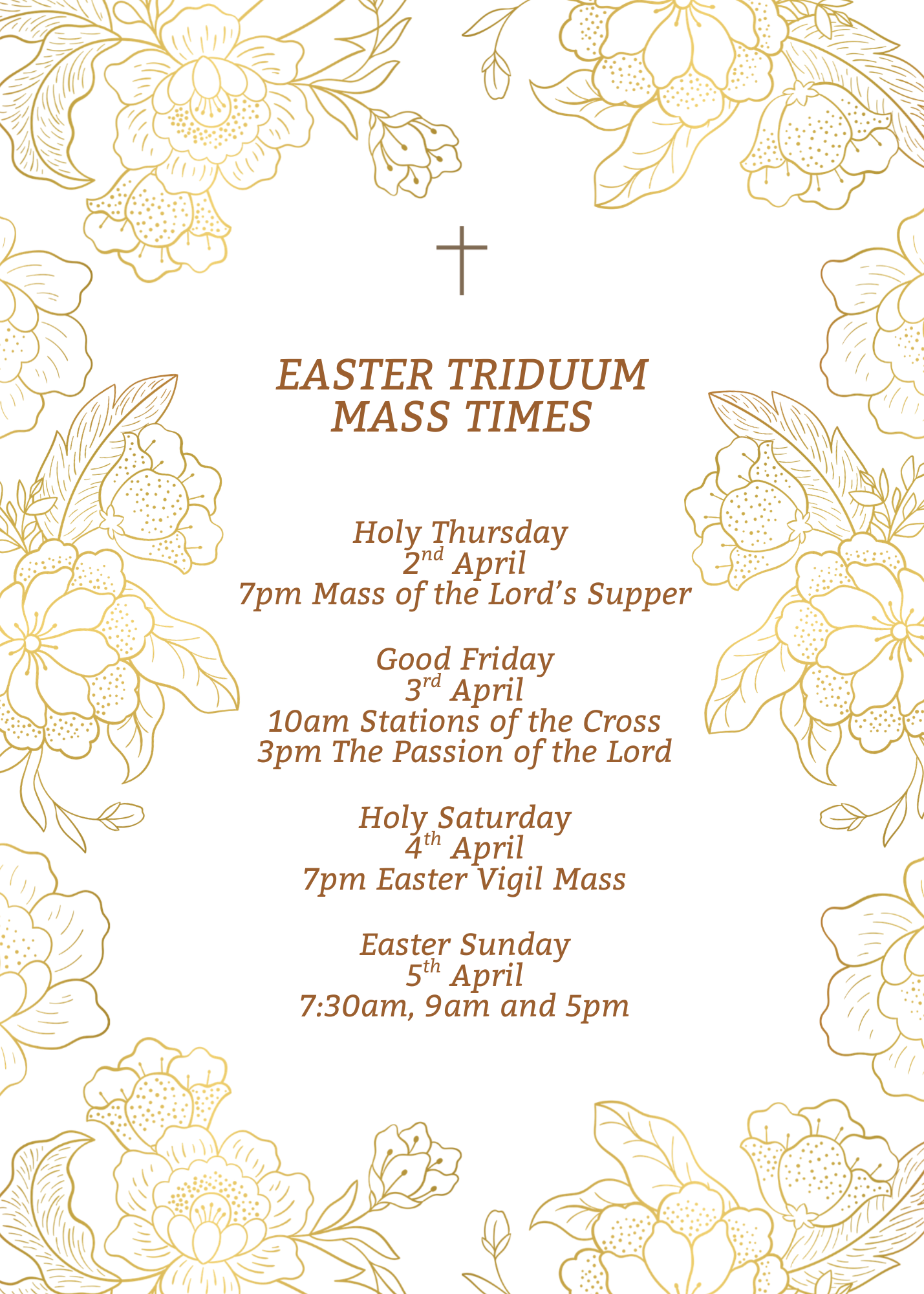 PLEASE CHECK PARISH NEWSLETTER FOR EASTER SERVICES AND SPECIAL MASSES